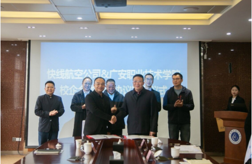 会上,王建平简要介绍了学校发展现状及校企合作取得的成效。王建平表示,在创建应用本科大学目标中,需要情系教育的企业家支持小平同志家乡的教育事业,抢抓成渝双城经济圈建设重大战略机遇,共谋发展大计。 何胜对学校近年来取得的成绩给予了高度评价,重点介绍了国家信息中心与北方航空实业集团、快线航空、湖南货运航空以及中商快线重庆科技教育集团之间的关联关系。何胜表示,通过交流与实地参观,学校的办学现状及前景给他留下深刻的印象,希望能与学校进一步深入合作,搭建资源共享平台,为学校创建应用技术型本科大学提供支持。随后双方签署了校企合作战略协议,并举行了“快线航空有限公司人才培养基地”的授牌仪式。