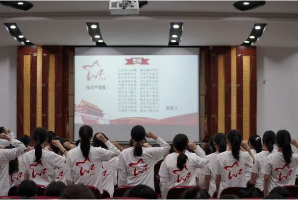 省市党代表、经济管理学院院长文卫在致辞中就“希贤班”的培养目标、教学运行及现实意义做了介绍,表示学院将围绕区域产业发展,优化专业结构布局,培养一批理想信念坚定,家国情怀深厚的红色旅游人才。在与会领导、老师和同学们的见证下,希贤班同学庄严宣誓:立足伟人故里,激发爱国情怀;传承红色基因,弘扬民族精神。红色旅游胜地,希贤领我先行;践行时代精神,共筑民族复兴……168字的铮铮誓言,表达同学们与时代同行,争做红色文化的传播者和争当红色旅游的先行队的决心。