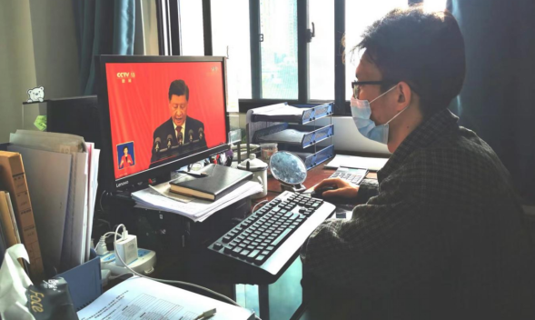 10月16日上午10时,校企合作处、实训处全体成员通过电视、网络等多种途径认真收听收看中国共产党第二十次全国代表大会开幕会。