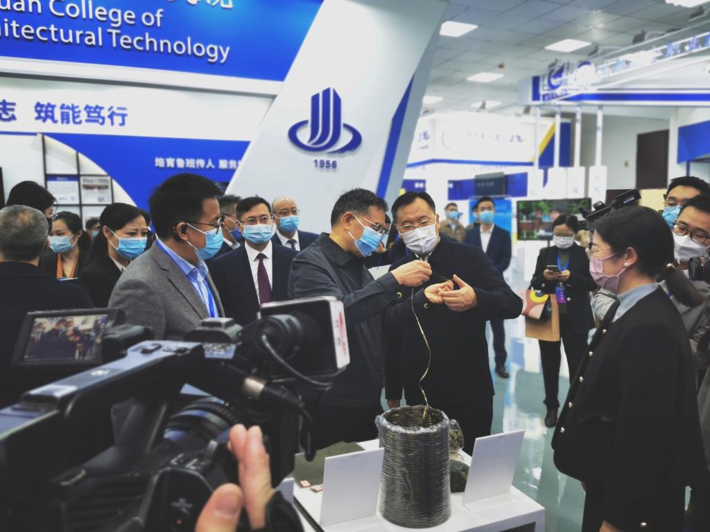学校对本次博览会高度重视,成立专班,协同各单位提前谋划、周密协调,充分准备,学校党委副书记、校长王义全赴现场指导布展工作。学校展区以“校企合作成果现、产教融合谱新篇”为主题,通过展示玄武岩复合新材料、应用工艺品实物,结合视频、图文、宣传手册等形式,全面展示学校以产教融合为主线,服务区域重点产业,与四川玄武岩纤维新材料研究院(创新中心)、四川帕沃可矿物纤维制品集团有限公司三方开展产学研一体化发展的重要成果。