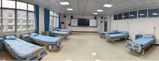 主要设备:多媒体、智能心肺复苏模型、智能口腔护理模型、多功能病床、输液架、床头柜、床旁椅、设备带等。