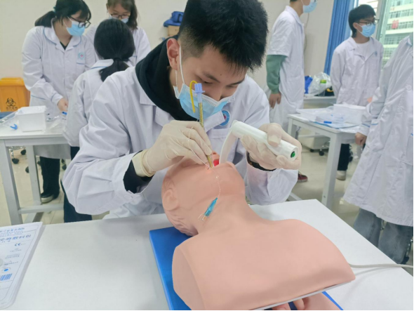 主要实训项目:心肺复苏(成人/儿童/婴儿)、自动体外除颤器使用、气道管理(口咽通气管/鼻咽通气管)、球囊面罩通气技术、气管插管术、急救止血技术(直接压迫/止血带/伤口填塞)、创伤包扎与固定技术、颈托使用与脊柱固定、急症识别与分诊流程、急救药品使用与计算、急性中毒初步处理、过敏反应急救处理、环境急症处理(中暑/低温/溺水)、急救团队配合演练、车载急救设备操作、院前急救病历书写与交接。