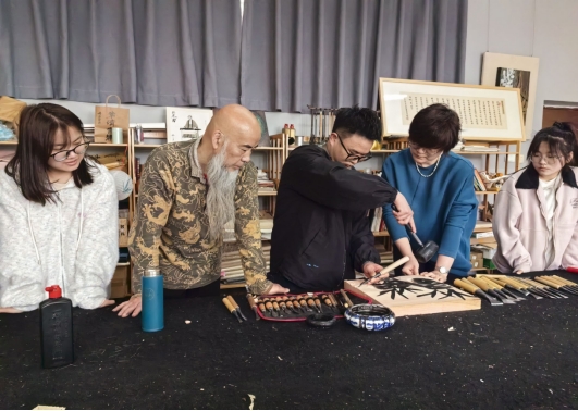 非遗技艺实训室是融合书法、雕刻、构成与空间艺术的实训场所。以“承古启新,艺工融合”为理念,重点培养学生的现代审美构成能力、木材的刻制与加工能力、文字的空间造型与装置意识,以及独立完成具有现代书刻作品的综合创作能力。