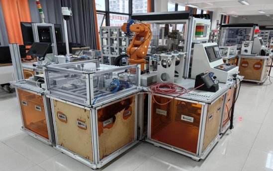 工业机器人系统集成应用实训室是控制方向的主要实训室之一,以日常教学为主,技能培训为辅,主要培养学生基于工业机器人、PLC、视觉、MES、CNC等系统集成的应用能力。